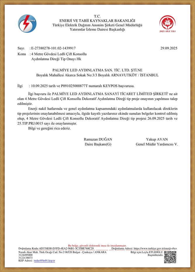 4. Kalite Güvencesi: Tip proje onayı almış aydınlatma direkleri, çeşitli testlerden geçirilerek kalite kontrol süzgecinden geçer. Bu süreç, üretici firmaların sorumluluklarını artırarak sektörde kalite çıtasını yükseltir.
