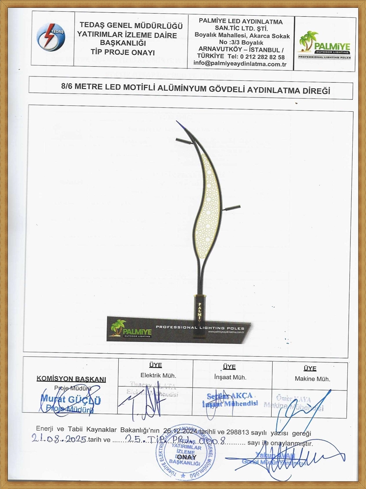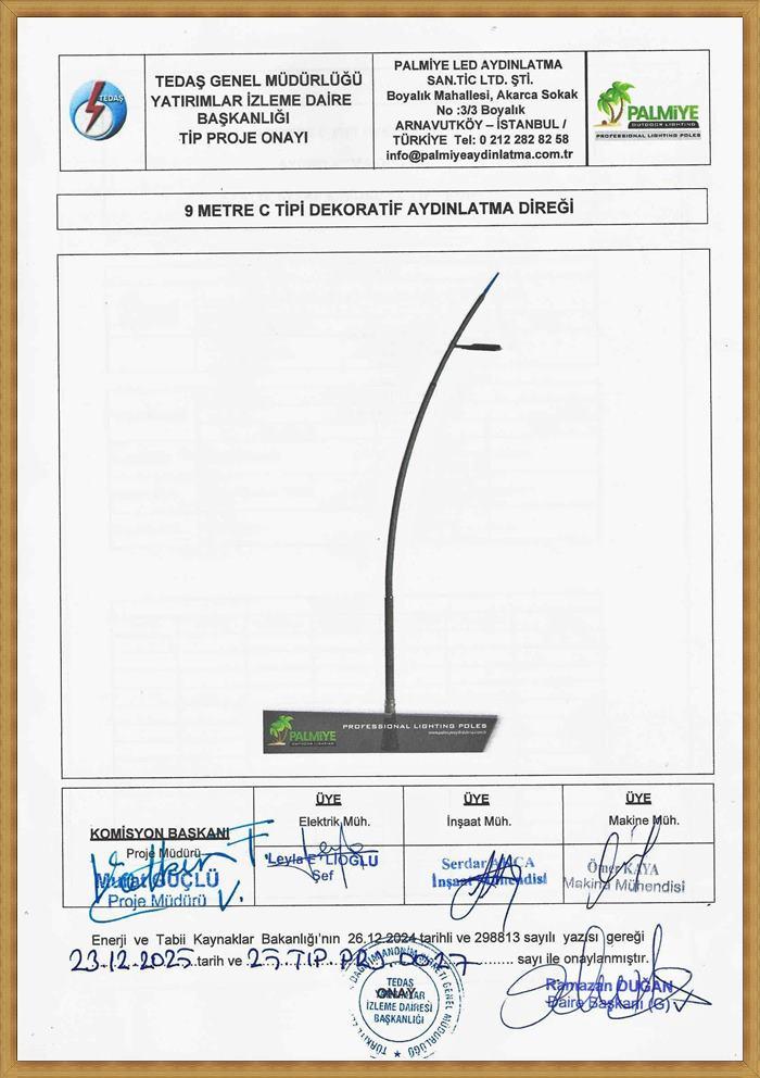 TEDAŞ Tip Proje Onaylı Aydınlatma Direkleri